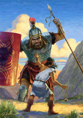 Self pity wants us to think that we are alone and are victims. Our Lord Jesus whispers that he gives us battles, to win victories. Often we respond in frightened terror, like the Israelites, when threatened by the giants. Instead, when we know we belong to the God of Angel Armies, we can respond like David. He declared that he had killed the lion and the bear, when they threatened his sheep and Goliath would like them because he defied Yahweh. David worshipped, as he went to battle, in the name and strength of Yahweh the God of Angel Armies, not with the latest military weapons. Goliath filled with pride, thought his physical size and weapons would give him the victory. Yahweh accompanied David, and gave him the victory, with a slingshot and a smooth stone. Then it was the enemy army who ran in terror, when they saw their champion dead.